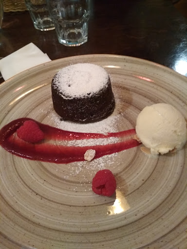 We had some cheddar cream soup with tortilla chips (which was really good) and a goat cheese apple risotto (for me) and a fried catfish with mashed red beet and corn (for my fiancée). The risotto was also really good (especially in that combination), but the catfish wasn't extraordinary. As dessert we had a chocolate mousse with almond and vanilla ice-cream that was divine. Or we're just huge fans of chocolate mousse with stuff 😀. Overall a solid 3.75/5 for the food (and we will be coming back to test other things from the menu).