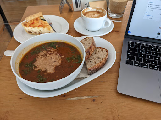 Read moreAs a study abroad student they have a great atmosphere up on the second floor and the back corners for focusing on work/studying materials. I usually go there for the mornings and are pretty busy. In the warmer weather (if you are not doing anything work related or homework related) I would suggest sitting outside to enjoy a latte or Turkish apple tea. For breakfast foods, I would suggest any of the cruffins they offer and the herb omelette. For more towards an afternoon snack, I would suggest having any of their cakes with an espresso drink. Their version of the Turkish coffee is wonderful! I would suggest trying it if you want to get into trying Turkish coffee. For those who are tourists or abroad students, they speak great English, so don’t afraid to ask if they say “Angol?” because...