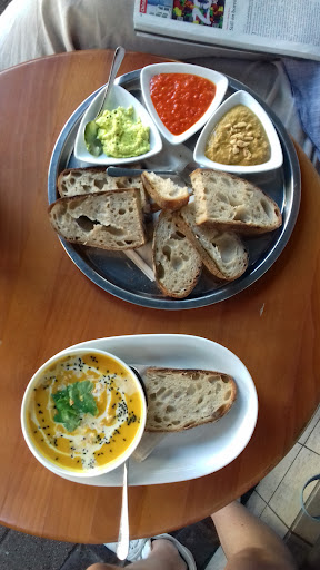 Our waitress was very kind, and we really enjoyed our breakfast. The dark bread they offer is delicious. It took them 20 minutes though to prepare our food, and the poor waitress was handling the whole jam-packed cafe by herself. They should have more waiters for such busy hours, and the kitchen should have more help. I don't think you can come here for a quick breakfast considering the time it takes them.