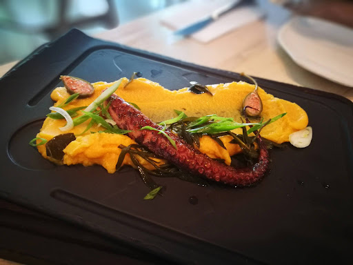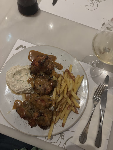 I went with my friend and split all dishes into two to get a taste of more courses. First we went for the Octopus with fava puree. Very good grilled octopus, it was tender and not at all gummy-like. Also, the fava puree was excellent and the truffle-oil complimented the whole taste. Then came the Kebab. This is very far from the "original Greek gyros" by Kerkyra. The whole-grain pita was impeccable, also the meat and the sauces. I sensed a little more fuss here then what is expected from a "kebab", but overall this was a very good minimalist composition. The third course was the Kleftiko lamb. This is a 12-hour baked lamb with vegetables and smoked cheese. Tender, good-tasting one-course dish, the seasoning was well complimenting the overall taste. Last came the dessert: Kataifi. This may be the best dessert I have ever had in my life! I can only tell wonders about it! Imagine an apple-ish dough soaked in honey and cinnamon, crushed walnut, then a bunch of crispy caramel spaghetties and to top it all a scoop of vanilla ice cream. Overall it had crispiness on one side, hot, soft and soaked dough on the other, icy ice cream on the third, and all of the tastes fit together so nicely it was an orgy really... From now on I will be a Kataifi-holic :)