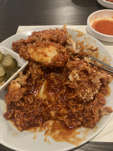 Read moreThis place has amazing samgyeopsal, jjambong, and jjangmyeon. Unfortunately I didn’t order those any of those dishes this time. I ordered the Korean Fried Chicken. It came out as just cuts of old chicken breasts which were breaded and deep fried. However, the chicken they used was old and rubbery. It was as if they needed to quickly defrost some frozen chicken breasts so they microwaved it, but they did it for too long. Rubbery grayish chicken. Also the sauce was too much ketchup not enough gochujang. And the amount of garlic was insane. Seems like they must’ve chopped up a whole head of garlic and sprinkled it raw on top. It was one of the worst kfc dishes I’ve ever had, and having lived in Korea for many years, I’ve had lots of...