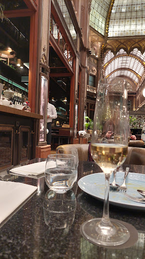 Read moreWhat can I say? The restaurant premises are fabulously beautiful, so for the atmosphere 5, that’s all. Price/quality ratio 3 points. A little heads up for those who are traveling to Budapest to relax, like we did. Don't eat there. Drink coffee or tea or something alcoholic, take a cake, but don't have lunch like we did. So, service. We reserved a table in advance. Otherwise, we wouldn't get in. In principle, ok, considering the beauty of the place and those who want to get there. I was pleasantly surprised by the smile and friendliness of the waiter. But. ...In the entire establishment, they place cutlery directly on the granite table! Next, our dishes were served to us while we washed our hands, we were not present. We came back and our main courses are standing and getting cold! Friends, this is too much of a tourist trap. There is etiquette, after all! Next, price - quality. We ordered a bottle of champagne, Karpati style Pike perch fillet, Budapest style beef Tenderloin, and dessert from the special menu. The pike was disgusting, frozen, fried, and the side dish was not tasty, as if something had been reheated yesterday, but maybe it was?! We paid about 50 euros for this dish. The beef cost about the same, but it was delicious. The dessert was not particularly impressive, something small and expensive. The prices are very high for this quality of food. Hence the conclusion, a purely tourist place, designed for traffic. I wish you not to fall for this. Budapest has very beautiful and delicious restaurants, with fresh food, and great service that is much cheaper. Again, you can visit the place for the beautiful atmosphere and order a cup of coffee, it’s...