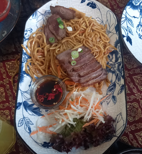 I am very impressed by the food, except for a problem I had with overcooked duck. Asian dishes do tend to overcook duck compared to western tastes though. I visited twice in the space of a week during a stay in Budapest. On my first visit I arrived just after 10:30pm and was told that food was still being served for orders in the next 10 minutes. I quickly ordered starter and main. I love the sweet chilli sauce in this place, it has a lovely flavour and good spicy kick. I would order any starter that includes it. On my first night I had tempura prawns with sweet chilli. On my second night I had squid with sweet chilli. The squid was so soft, juicy and perfect. My 1st night main was a delicious chicken with ginger dish - they have a big menu. My 2nd night main was duck in a sweet and sour sauce. The sauce was fantastic but it was a shame that the duck was overcooked. No sign of pink whatsoever - just brown meat, nice but drier and a lot less flavoursome than it could have been. It was just my second visit there but I really expected more from the chef. Such fine timing on the squid but the chef left the duck to turn brown and less than juicy. My 2nd visit was my only dessert here. I ordered the pineapple with caramel. Oh my! what a nice dessert! Half a pineapple with the pineapple cut into chunks. I could see a few dark stripes of caramel but honestly can't figure out how much was pineapple or fruit with some caramelised sauce. I suspect and don't mind at all, that it was mostly half a pineapple but the caramel thing was added to entice orders. Whatever is going on, I would certainly...