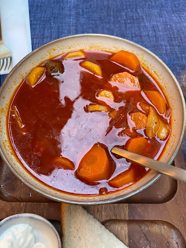 We enjoyed authentic Hungarian dinner in this charming, centrally-located spot with a very cozy atmosphere. The staff’s service was exceptional: warm, friendly, and with excellent English skills. My partner and I really appreciated their recommendations, attention to detail, and the great sense of humor they showed while serving us. We opted for the Goulash soup and the tasting platter to share (beef stew with nokedli), and we couldn’t have made a better choice!