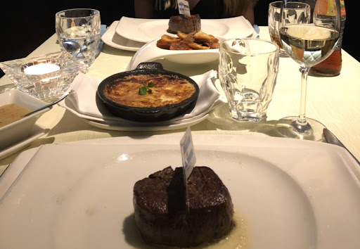 Read moreTo celebrate our stay in Budapest we wanted to grant ourself a nice evening. We ended up the the prime steak and wine restaurant near the basilica. We had not reserved but still got a nice and private table. The service was very friendly and attentive and guided us to our seats. The steak selection is huge so you can choose what suites you best. We decided to have an Argentinian Black Angus filet mignon in medium well. A side dish and a sauce is also included in the order where you can pick one out of 18 side dishes and choose one out of several sauces. We had the oven baked potatoes and the casserole. The steak took several minutes to arrive but that’s sure just since it is done freshly. Still we were guided into the evening with two small starter dishes. A small bread loaf with butter and liver paste and a beef tartar with a grissini stick. Both tasted wonderful and were given on the house. The wine selection is also large. We had the Sauvignon Blanc which had a very soft but fruitful taste, a water bottle and an ice tea. The steak itself was just heavenly. It was super soft and medium well just how we wanted it to be. The meat was very tasty so they didn’t need to use lots of spices to make this dish excellent. The side dish also didn’t disappoint! The potatoes (oven baked and the casserole) tasted delicious and had the perfect consistency. Even though we had not planned to have a dessert we decided to have a brownie after the waiter brought a big plate with lots of dessert dishes to show us what they look like. All in all the restaurant has a five star service and five star food. We would totally recommend to visit and taste the food. Mind that it is a prime restaurant so the price accommodate to the food...