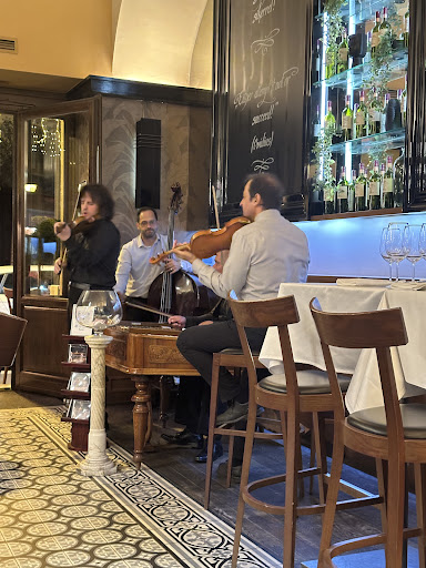 Love this lovely bistro! We had just attended a concert at St Stephen’s Basilica & had had a long day of exploring the city on foot so were quite tired when we happened to pass by this warm, friendly bistro with live folk music. We requested an indoor table & had the whole interior virtually to ourselves. From start to end, our waiter Daniel was warm, friendly, entertaining, knowledgeable & attentive. From feeling exhausted, we quickly perked up with the happy, lively music provided by a violinist & a marimba? musician. They had a wide repertoire of music & played with verve & joy. The improvisations were delightful! Now to the food. We were pleasantly surprised with a complimentary amuse bouche. This was followed by their veal goulash which was absolutely delicious. My bowl was sparkling clean as I had mopped up every drop with the bread provided. We had asked to share a single portion of the goulash between 2 people & were pleasantly surprised to have the kitchen split it into 2 bowls. That’s true service! We then had the pike-perch Kapati with prawns & risotto with pecorino cheese. Daniel explained the history of the dish to us & recommended a lovely Hungarian white wine to pair with it. The risotto wasn’t overly rich & cooked to perfection. The fish was fresh & subtly flavoured & the prawn succulent & well marinated. I’m usually cautious about risotto as I find it generally overly rich but this version was simply divine. We ended the meal with the traditional Hungarian dessert of cottage cheese dumpling with a honey crumble. This was good but I would have preferred it served hot. The entire meal was served without any delay & despite it being busy outside, Daniel never failed to check up on us. I couldn’t recommend this restaurant more & would definitely return if I visited Budapest again. A lovely experience of Hungarian cuisine served with warmth & efficiency in a lovely ambiance of live folk music. Many thanks for making our last night in Budapest such an...