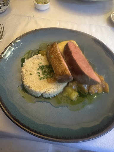 Love this lovely bistro! We had just attended a concert at St Stephen’s Basilica & had had a long day of exploring the city on foot so were quite tired when we happened to pass by this warm, friendly bistro with live folk music. We requested an indoor table & had the whole interior virtually to ourselves. From start to end, our waiter Daniel was warm, friendly, entertaining, knowledgeable & attentive. From feeling exhausted, we quickly perked up with the happy, lively music provided by a violinist & a marimba? musician. They had a wide repertoire of music & played with verve & joy. The improvisations were delightful! Now to the food. We were pleasantly surprised with a complimentary amuse bouche. This was followed by their veal goulash which was absolutely delicious. My bowl was sparkling clean as I had mopped up every drop with the bread provided. We had asked to share a single portion of the goulash between 2 people & were pleasantly surprised to have the kitchen split it into 2 bowls. That’s true service! We then had the pike-perch Kapati with prawns & risotto with pecorino cheese. Daniel explained the history of the dish to us & recommended a lovely Hungarian white wine to pair with it. The risotto wasn’t overly rich & cooked to perfection. The fish was fresh & subtly flavoured & the prawn succulent & well marinated. I’m usually cautious about risotto as I find it generally overly rich but this version was simply divine. We ended the meal with the traditional Hungarian dessert of cottage cheese dumpling with a honey crumble. This was good but I would have preferred it served hot. The entire meal was served without any delay & despite it being busy outside, Daniel never failed to check up on us. I couldn’t recommend this restaurant more & would definitely return if I visited Budapest again. A lovely experience of Hungarian cuisine served with warmth & efficiency in a lovely ambiance of live folk music. Many thanks for making our last night in Budapest such an...