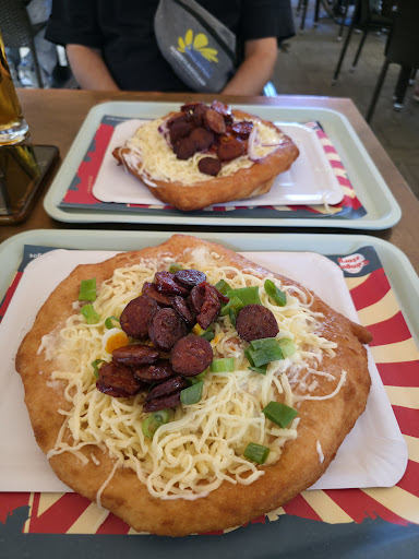 Read moreWe discovered this place because it was being recommended on Reddit by locals for having really good, quality langos in the center of the city. We have something similar in our country (probably identical, scovergi) so we ditched the classic recipe and went with a loaded one. The langos was great, if a bit expensive. It's definitely a place geared towards tourists but the whole concept is done trully well. Great staff, very organised. We sat outside on a hot September day and it was full. The food came in like minutes. Even though I found the portion size to be a bit small in the beginning, I was struggling to finish the whole langos by the end. Went inside to the bathroom and it was very clean, as tras the whole interior. My only problem with the place: it was so full that we felt like we couldn't hang out a bit longer after the meal, like we were occupying seats meant for other tourists who wanted to eat. In the tourist season, it's definitely a place where you eat, pay and leave, no hanging around for the food to set a bit before going on to do other...