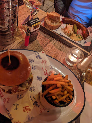 For the main course, we had the sausage with sourdough bread, and the standard burger. I recommend getting the sausage (it’s a little spicy, just perfect), but I don’t recommend the burger (it’s meh, nothing special). Also, try their Blondie beer, and skip their porter beer.