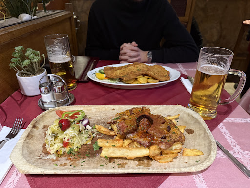 As for the food—absolutely delicious! We tried the schnitzel and the gypsy-style meat served on a wooden board, and both were incredibly flavorful and cooked to perfection. The portions were huge! To go with our meal, we had draft beer, which was refreshing and the perfect match for the hearty dishes. 🍻