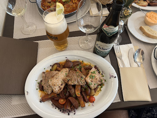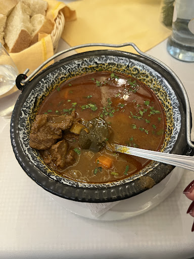 Read moreIn hate to write bad reviews but my family and I just had lunch and the restaurant fell far below our expectations. Service was unsatisfactory as the waitress who served us didn’t even smile once and we got the overall impression we were unwelcome. I am not a picky eater but the food was bland, tasteless and extremely dry. In fact, I ordered the duck leg with potatoes and the potatoes had more moisture than the overcooked duck leg. Parts of the skin were inedible due to being overcooked and the meat required much effort to cut as it was far too dry. The potatoes themselves had no taste and required more salt. In contrast, the goulash was quite salty. My family’s dishes were equally tasteless. Finally, we could not finish and asked for a box to take away in order not to waste the (bad tasting) food. We were charged 300 FT for a box. In North America, we don’t promote food waste and I’ve never paid for a takeaway box in my life anywhere else in the world; perhaps it’s different over here. The 13.5% gratuity automatically added on top added insult given we were not satisfied with the service. Our server was very cold, no smiles, and didn’t notify us of the additional surcharge for the takeaway box. It feels like being “nickeled and dimed” and we were in no way gratuitous with this service. Unfortunately we cannot recommend anyone go here...