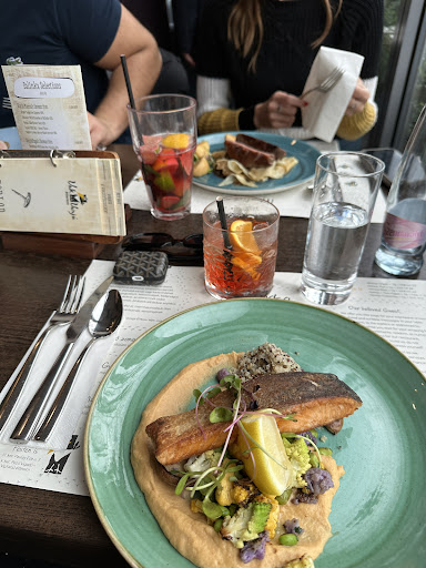 The main event, the salmon filet, was a testament to the kitchen's prowess. Cooked just right, the salmon was flaky and moist, with the exterior providing a slight crisp that added texture without overshadowing the delicate flavors of the fish. It was served with a side that complemented the richness of the salmon, enhancing rather than competing with its natural flavors.