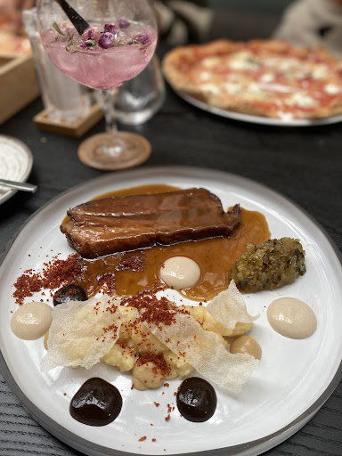 Read moreEgy nagyobb társasággal mentünk vacsorázni, ezért bővebben írok a helyről! Az étterem elhelyezkedése családi házas kicsit kertvárosi környezetben található (valóban olyan mintha a szomszédba ugrana át az ember). Egy családi ház lett átalakítva étteremmé nagyon ízlésesen és alaposan átgondolva. A pince helyiségben egy 8-12 fős borkóstolós rész van kisebb csoportok számára (nagyon hangulatos). Az első emeleten kisebb termek vannak céges rendezvényekre és egy kis terasz. A földszinten van a vendég tér asztalokkal, bárpulttal. Az ételek kicsit a fine dine és a házias konyha közé sorolhatók. Ízletes és mégis laktató adagokkal. Nem túl fűszeres hanem pont amennyire kell, nem tolakodó mégis minden falat után bólint egyet az ember hogy igen jót választott az étlapról. Előételként érdemes megkóstolni a marha tatárt (nem darált hús, hanem késsel apróra vágott). Levesek közül a kacsa ramen és bajai halászlé nagyon finom! A főétel nálam az angus marha steak, szív salátával és isteni szósszal. Médiumra sütve. A másik nagy kedvenc volt a marha pofa, burgonya, erdei gomba. Csodálatos ízvilág. Desszertnek pedig Crepe Suzette fahéj fagyival… 5*!!! Az italokról is pár szót. Nagyon nagy a választék. Finom hazai és külföldi díjnyertes borok, minőségi külföldi whisky, rum. És persze nem utolsó sorba a koktélok! A koktélok végig kóstolása kötelező!!! :) annyira jól sikerült a vacsora hogy másnap egy jó brunchra is vissza mentünk. Benedict egy és a Croq Madame isteni! Jó étvágyat...