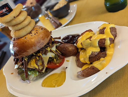 Not a cheap place - bit more than 25 € what you see on the pic - BUT quite huge portions (I couldn't finish it), lightning fast service, friendly and polite staff, quality ingredients + pro cook = really delicious food, everything is very clean - this is a comfy place. Absolutely recommended for beef/BBQ-fans. Easy to park right before the bar. :) I'll be back for sure when I...