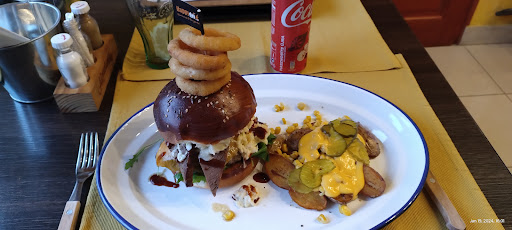 Read moreNem ajánlott, túlárazott, élvezhetetlen hamburger. Vasárnap 14 óra körül érkeztünk, a pincér felhívta a figyelmünket, hogy legalább 40perc a várakozás. Ez értékelendő. Sajnos arra a döntésre jutottunk, hogy megvárjuk, ám a 40perc lett legalább 70, de ez volt a legkisebb gond. A pincér meg sem kérdezte, hogy milyenre kérem a húspogácsát, már itt kezdett gyanús lenni a dolog. Gondoltam jelzem magam, s a hamburgert medium rare-re kértem, helyette kaptam egy cipőtalpat. Amikor elvitte a tányéromat, s látta rajta a pogácsa legalább 2/3-át, meg sem kérdezte, hogy minden rendben volt-e... Kedves ember volt, de nem egy jó pincér. A hús azon túl, hogy cipőtalpra volt sütve mellesleg rágós és mócsingos volt. A krumpli, a coleslaw, a sajtszósz, illetve a szelet barbacue szegy legalább jó volt. Viszont egy olyan helynek, ami már a nevében hirdeti, hogy Barbacue & Burger, illene tudnia húspogácsát sütni, s 8000 forintért szerintem illene normális minőségű marhahúst árulnia. Retúr hév jeggyel, ugyanennyi pénzből a fővárosban fényévekkel jobb hamburgereket kap az ember! Nem értem mire...