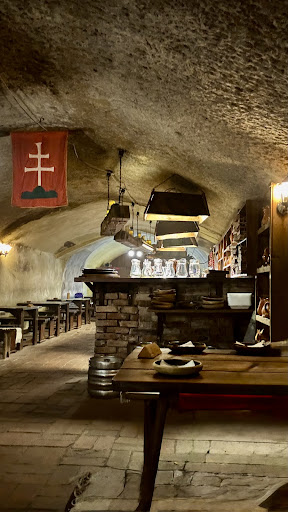 Read moreKét év után ismét betértünk, bár voltak bennünk ellenérzések. A pincérek vegyesen öltözöttek, így nem lehet tudni, hogy a Hahó öcsiből vagy a középkorból tekintenek-e le ránk véreres szemeikkel. A kiszolgáló hölgy még hagyján, de az úr inkább funkcionális, mint kedves. Az utóbbin lévő kék filc pokróc az álmosság érzetét keltette bennem, ha nem lett volna már messziről láthatóan koszos. Ez utóbbi fedőréteg egyébként mindenhol megtalálható, ami nem gondolom, hogy azért, mert valami középkorit sugalló, kötelező is. Ha én ott földesúr lennék, lehet lenne egy-két deresedés....Az asztalok ragadnak, a padokon lévő juh, komondor, albínó oroszlánszőr meghatározhatatlan korú és mosási számossága a 0 felé közelíthet. Az étteremben beljebb haladva néhány asztalon ilyen piros, Corvin címeres (?) palástot kap az étkező, h ne egye le a tunikáját... Nem tudom, h ezt minden vendég után cserélik-e vagy több vendég által is leehető? Az ételek ehetőek, drágák és ugyancsak visszarepít minket a középkorba. A pincértől villát kérve -"a középkorban nem volt villa és mossanak kezet a citromos dézsában"- válasz érkezett. Nos lehet, h krumpli, kávé, pénztárgép, áram és egyebek sem voltak anno domini, ahogy dénárban, garasban sem tudtam volt fizetni vala és pottyantottam is vón, de angol a wc. Ez a dézsás kézmosás, így a COVID után, meg mondjuk a másik után ugyanabban a kozmikus pívízben.. háát? Van ez a HACCP dolog, vagy CCCP, de hagyjuk.... Az ételt is fatányéron kapod egyesítve és telepíted le a magad fatáljába. Ezzel nincs gond, csak az a bennem szunnyadó higiénianáci óóórdít. kb. 12-en voltunk, előre foglaltunk és a be-kijáratnál foglaltunk helyet, ahol egyik oldalról -mint a kémény végén- ránk jött a pince túloldalán fortyogó ételkészítés minden aspektusa és így zsír, olaj, hagyma és mindenféle illat, amit moshatsz otthon a 21. sz-ban, másik oldal és így a bejárat felől az érdeklődő naplopók hada, akik nem átallottak volt foglalás nélkül beérdeklődni magukat a hely szentségébe, de elutasítottak vala előttünk, mint a janicsárok az Egri vártól. De hát ez a hely sajátossága, ahogy azt is nehéz eldönteni, hogy a fal penészes, koszos, vagy még a pannon tenger óta megmaradt moszat fedi-e. A gyerekek jól érzik magukat, vannak kardok, pallosok, láncruha és mindenféle kivégzésre alkalmas hely, ahogy a helyi szépségkirálynő is átsétál néha a pincesoron bordó bársonyban... csak az a mosoly... ahogy az a Szép zöld gyep, az hiányzik.... A számlabontást előre kell jelezni, mert egyébként élnek a pallosjoggal... Itt túloztam, mert a hölgy kedves... de a végére #jóvanazúgy és elfogadsz már mindent... Szóval, aki tudja hova megy, mit akar látni és vissza akar repülni a vár okozta történelmi korból egy furcsa magyar citromba, annak megér 5 csillagot. Aki egy kicsit is finnyás a szagra, tisztaságra, udvariasságra, komfortzónákra annak káttó. Egyszer jó... Fejem marad, további szépeket, fejlődést. Békességgel. P.s: hozzá kell tennem, h pünkösd...