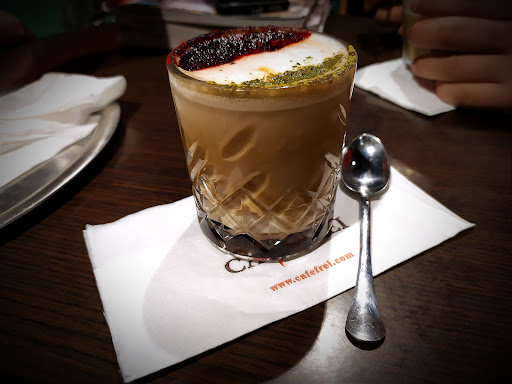 As Hungary does not have coffee chains like Starbucks, Costa, Pret or Nero, this was the closest to what we were looking for. Ambiance is great; it actually resembles a Viennese café with its unique creations... Maybe a bit too unique. My wife's Parisienne ice praline latte was very nice, but my Sacher cake coffee was a mistake - tasted like a cappuccino with a dollop of apricot jam. Presentation was excellent, surpassing any of the big chains. I would happily go back again for the atmosphere; the tiny café is actually within a book shop! It is also reasonably priced: our drinks cost 950 HUF each, which was...