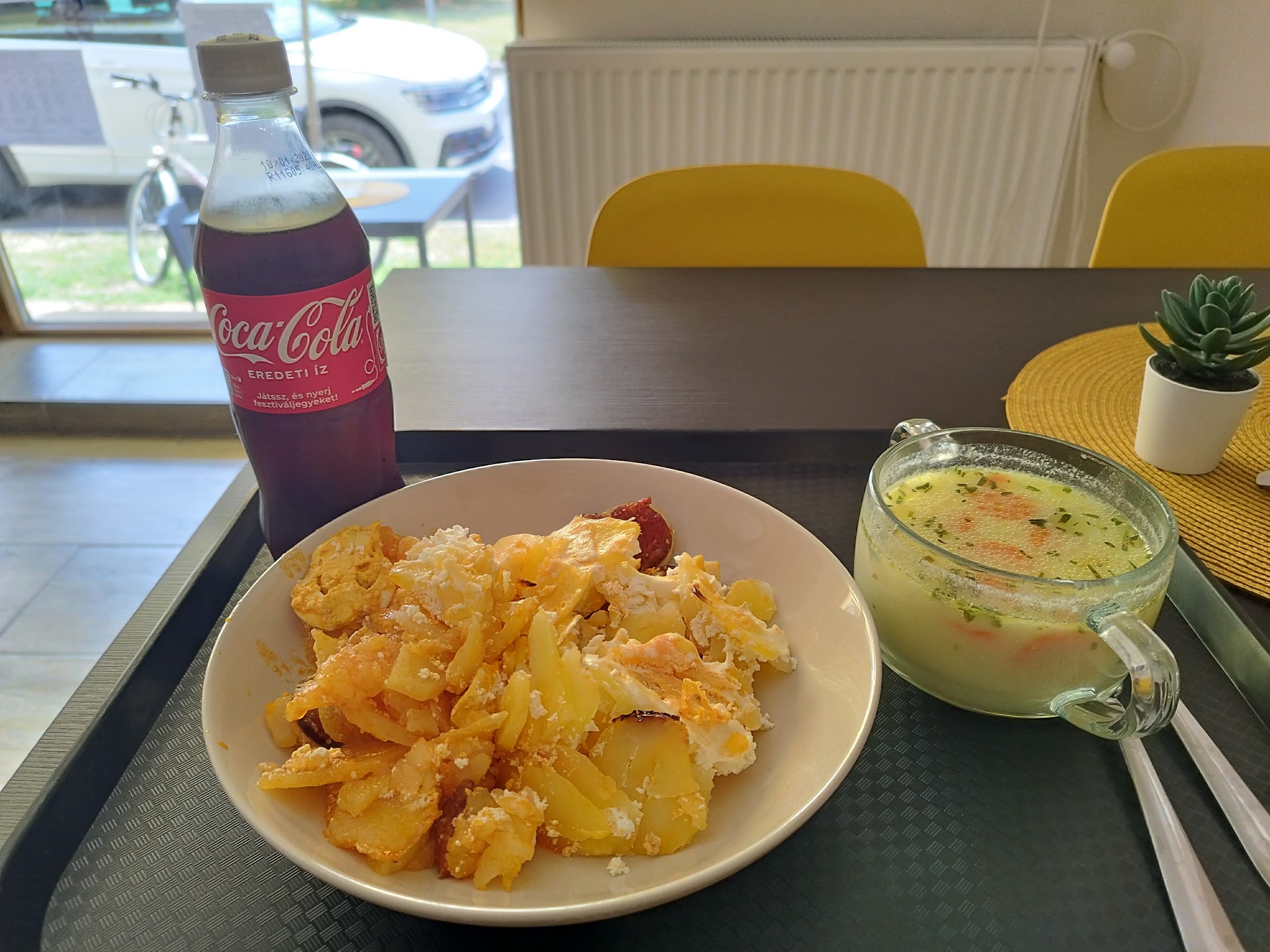 Read moreMa voltunk helyben fogyasztottunk. Leves nem volt rosz. Második kettő félet ettünk, egyik rizs rántott hússal, rizs rendkívül száraz, a húst nem tudtuk megenni olyan inas volt. Brassói íze még csak csak, de az állaga minősége tiszta mocsing, steak burgonya türhető lett volna, de hideg volt a hussal együtt. Kiszolgálás kedves,...