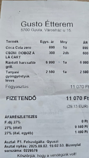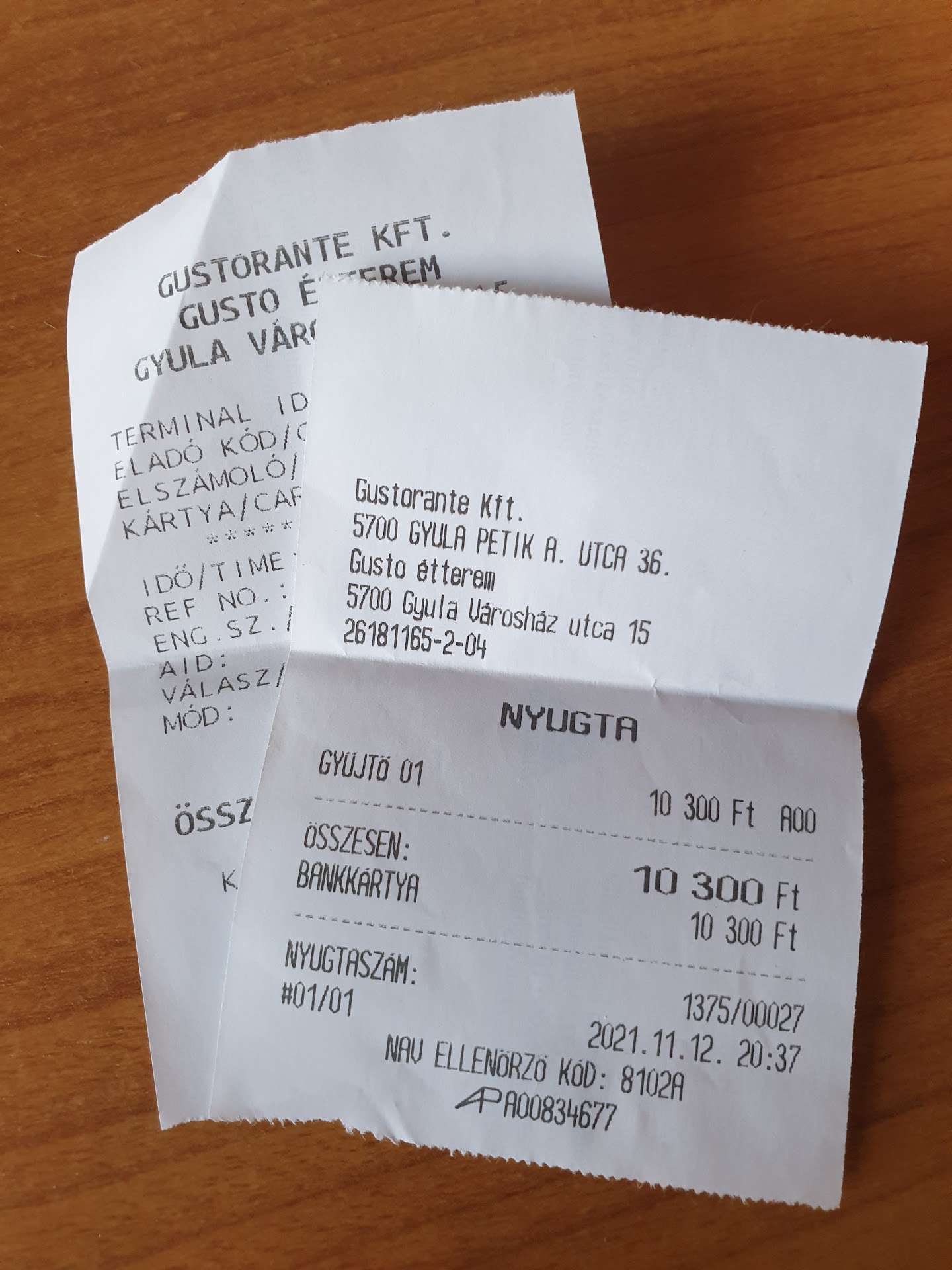 Illetve mindent kerekítve írt a papírra...( Ilyet még egy étteremben sem láttam hogy ami Mondjuk 590 akkor az 600 max a végén szoktak kerekíteni készpénzes fizetésnél de bankkártyánál sem) Ebből is látszik hogy a végösszeghez igazították a tételeket