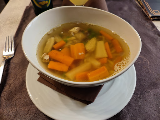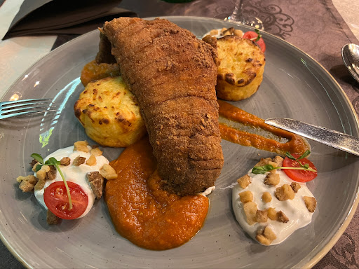 Read moreNagyon szép enteriőr, kedves, udvarias kiszolgálás. Az ételek amiket fogyasztottunk megosztotta a véleményünket, mivel a levesek ízletesek voltak, én vargánya krémleveset, a párom babgulyást evett. A levesemről lemaradt a parmezán ropogós. A főétel nem készült jól, a szarvas bélszínnek főtthús íze volt, mintha levesből vették volna ki, és úgy próbálták lekérgezni, így egy ízetlen rommá sült húst kapott a párom. A hozzá adott túrógombóc szintén alul volt fűszerezve, de az állaga megfelelt. Az én második választásom egy kacsamájpástétomra esett, ami finom volt, de ezen nem volt mit elrontani hiszen készen kapható termék amiből vágtak két szeletet, és zöld körettel tálalták, amit szintén nem kellett elkészíteni. A kalácska kissé száraz volt, amit kaptam hozzá. Az étkezést nálam mindig a desszert koronázza meg, ami túrógombóc lett volna, de sajnos fogyaszthatatlan volt. A rengeteg gríztől, a kanállal alig tudtam elvágni, szó szerint koppant a tányér. A felszolgáló hölgynek jeleztem a problémát és nagyon készséges volt, sűrűn elnézést kért és kompenzációt is kaptunk. 20%-ot levontak a végösszegből. Az étterem nívójának gerincét a személyzet adja. A felszolgálás hozza is az elvárt szintet, a konyha színvonalát viszont emelni kellene, és akkor valóban Gyula legnívósabb helye lehetne...