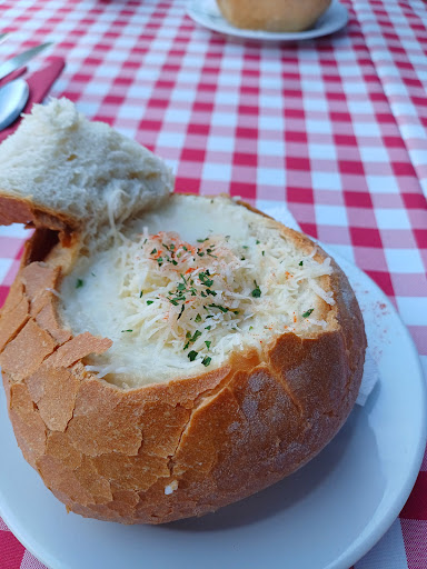 Read moreNem vagyunk különösebben igényesek. Az étterembe azért mentünk be mert fáradtak voltunk és szerettünk volna enni valami egyszerűt, gyorsan. Húslevest kértünk ami átlátszó, enyhén sós melegvíz volt inkább mint leves. Húst valószínűleg sosem látott, inkább csak leveskockát. Abból is keveset... Második fogásnak én a gyerekmenüből halrudacskát kértem sültkrumplival. Nem egy bonyolult étel de még ezt sem sikerült ehetőre elkészíteni. A halrudacskák kívül kő kemények voltak, belül pedig folyékonyak. A párom roston csirkemellcsíkokat kért grillzöldséggel. Ez a gyakorlatban úgy nézett ki, hogy a csirkemellcsíkok valami vegyessalátával össze voltak főzve és az egész nyakon volt öntve valami borzalmas curry-s fűszerrel. Inkább valami wokban készült ázsiai ételhez hasonlított aminek rossz íze és gusztustalan állaga volt. Jó idő volt, így az étterem összes ajtaja nyitva volt, a levegő átjárt a helységen de így is borzasztó ételszagú lett mindenünk. Kiábrándító volt az egész… Ha az étel jó lett volna akkor is drágának találtuk volna, így meg aztán pláne! Az egyetlen pozitívum a...