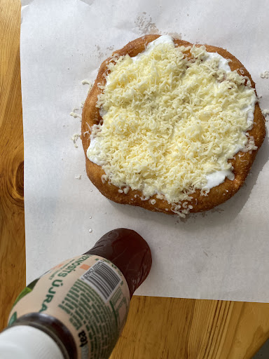 Read moreThe lady serving me knows English and was willing to explain the flavours of lángos to me. She served me with freshly fried lángo with loads of cheese on top. Although I need to wait for around 8 mins for the lángo, the lángo was really delicious. I particularly liked the sour cream and garlic on the dough.