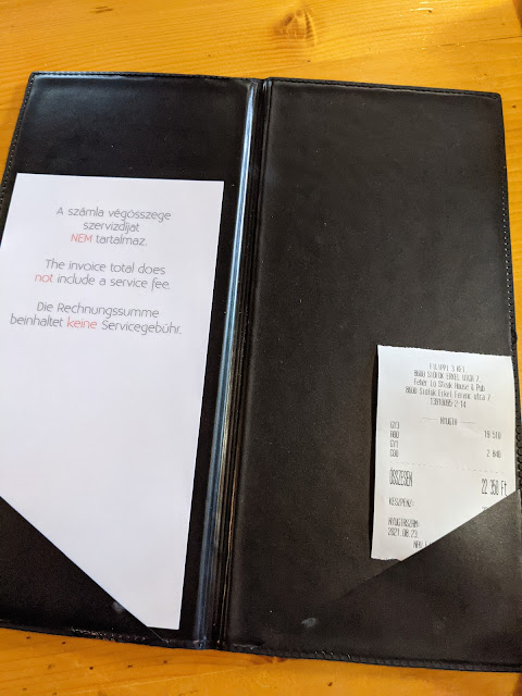 (-) It was pointed out very clearly to us that the price we paid for 3 adults (over 22000 Ft [63€] for main course + dessert) was without the service fee. Maybe that's normal in USA, but I don't expect this type of behavior in Europe. Please just pay fair wages and skip the 'expected' extra charge. We paid by card, and they entered the amount so there wasn't even an obvious option to add any amount on the card to cover the 'fee'. I was considering paying 23000 if I could have used my card, but I don't carry cash and really felt the price was too high anyway....
