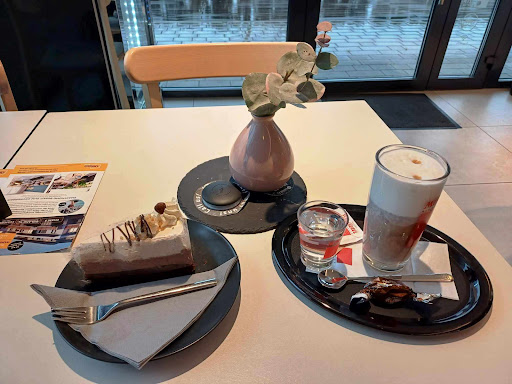 Read moreNagyon kedvesek es készségesek az ott dolgozó hölgyek. A jegeskávé nagyon finom, a süteményekből alig tudtunk valasztani, olyan szépek. Van laktozmentes ill " minden mentes" süti is, persze " bűnözni" is lehet, nagyon csábító a kínálat. Az asztalok kellő tavolsagra vannak egymástól, nem összezsúfolt a terasz. Nagyon jól éreztük magunkat es maskor is...