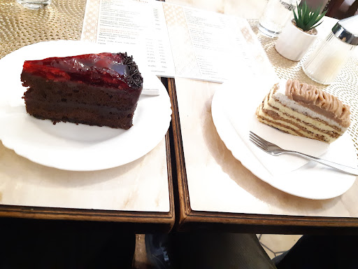 Read moreMitten im Zentrum von Sopron gibt es dieses Lokal. Man kann Kaffee trinken oder Kuchen essen, Eis und andere Imbisse und Getränke zu sich nehmen. Die Einrichtung ist old fashion und im Lokal gibt es eine gemütliche Atmosphäre. Allerdings der einzige Kellner der heute Vormittag um 10:30 herum drinnen stand war mürrisch und grantig. Er kann zwar Deutsch, aber redet irgendwie widerwillig. Um auf die Toiletten zu gelangen, muss man viele Stufen hinunter in den Keller. Der Kaffee war gut, der Preis weniger gut. Insgesamt sind die Preise enorm gestiegen, wie man den Fotos entnehmen kann. Nicht behindertengerecht,...