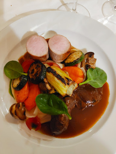 Read moreHad a lovely romantic diner in the inner yard|The service was on point and prompt ||The food was absolutely amazing||Had the Grill-plate, served with jacket roast potatoes and mixed cabbage-salad ||(Pork fillet, fillet of leg of chicken, beefsteak with Lyon-onions, “Kolozsvár” bacon)|Each type of meat has been well marinated and therefore so tender it could almost be cut with the fork's side||The cabbage salad was authentic and well balanced in its vinegary-sweet traits||The Lyon-onions were not oily at all and well done|The potatoes could have been a meal on their own, they were so delicious||Also had a cheese plate as a starter to share|A surprising display of different cheeses paired with freshly made fruit chutneys and jams of amazing flavor. Superbly paired with a Soproni wine of excellent quality||Bread is homemade and a special tasting plate with a small warm bun and whipped herb-butter was devoured enthusiastically while our plates were being prepared||Price above average in the city but totally justified||Definitely would...