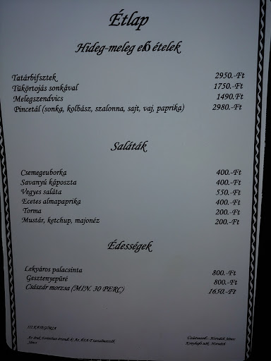 Read moreGoogle értékelés alapján találta párom a helyet. Elmentunk, a bejutas számomra kicsit fura volt, mert csengetni kellett, de az ajtó nyitva volt. A tulaj mondta éppen felújítás alatt vannak, menjünk nyugodtan. Eleinte megrémültem, hogy hova vitt az asszony, de az értékelés alapján, mondom tegyünk egy próbát az ételre is. Az ételre 5 csillag, a kiszolgálás 5 csillag. Az adag nagy volt. Emberes adag, maradjunk ennyiben. :) 4en voltunk, 20 ezer Ft alatt fizettem, borravalóval, szóval ár érték arányban is 5 csillag. Szóval csak ajánlani tudom, akinek nem fontos a csilli villi étterem, és egy jót szeretne enni. :) Csülök nagyon jó volt. Cordon bleu pulykabol, és Cordon bleu sertésből. Házi sonkával volt, nem mirelit, még egy óra után is a számba a jó kis füstölt sonkás íz. A sajt is vastagon volt. A tulaj rendes, barátságos, aki egyben a felszolgaló, a pultos,...