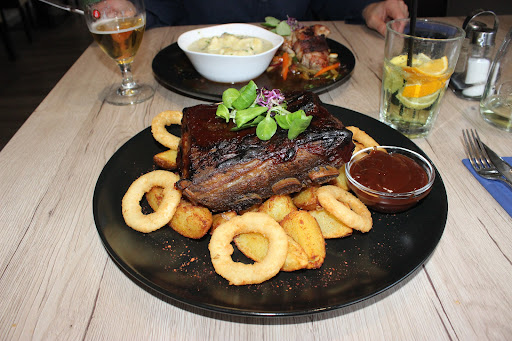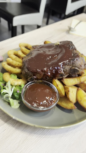 Másrészt az ételek mennyisége, minősége jó ár/érték arányt tükrözött. A kedvesem májgombóclevese és az én csülkös káposztalevesem hihetetlenül jól esett a húsz kilométeres gyaloglás után. A második fogás pedig mindkettőnknél telitalálat volt, bár mindkettőnkön kifogott a mennyisége miatt (megmondom őszintén, másnap a hazavitt, elcsomagolt "maradékot" vacsiztuk meg). A kedvesem baconba göngyölt sertésszűzet fogyasztott tejszínes- fokhagymás házi gnocchival, pikáns grillzöldséggel. Az ízvilága maximálisan bejött, a hús nem volt kiszárítva, a gnocchi omlott a szájban, a pikánz zöldségek édes-savanyú-csípős arányapedig nagyon jól lett eltalálva. Én BBQ sertésoldalast választottam és kaptam is egy hatalmas adag, puhára sült, kívül mégis ropogós husit a megfelelő mártás és köret kíséretében. Szuper volt!