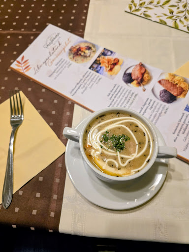 Read moreHétköznap délután késői ebédre érkeztünk 4 fővel. Gondoltuk, 9 év után ismét betérünk ide. Italnak mindenki limonádét??/ szörpöt kért. Szinte átlátszó valamit kaptunk, ami alig tartalmazott szörpöt. A főételek nagyon jól néztek ki. A májgombóclevessel, húslevessel nem volt gond. A gulyásnak furcsa volt a színe, íze átlagos. A haltálon az egyik hal nagyon fokhagymás volt, a lazac borzasztó száraz, de ennek ellenére ehető. A cordonban valami olcsó sonka és folyékony sajt volt. A hús nem tűnt frissnek. A kétszemélyes tálon a rántott csirkecomb 100% nem volt friss, számomra ehetetlen volt. A roston csirke gumis és száraz, a baconnak furi szaga volt, a roston sertésborda is száraz. A borzas csirkemell nem találkozott sóval. A rizs ragadós, kiváló sushi készülne belőle. A hasáb kiemelten,és minden más a tálon sótlan. A párolt zöldség kifogástalan( talán más készítette). A tálhoz tartozó gombaszósz porból készült, értékelhetetlen. Nem értem, miért vesznek fel olyan embert szakácsnak, aki nem tud megsütni minimum egy egyszerű roston csirkét. Négyen érkeztünk és nagyon éhesek voltunk. Nyilván elfogyasztottuk , amihez volt gusztusunk, de az ember nem azért megy étterembe, hogy ilyen minőségű ételt fogyasszon, inkább megsüti magának otthon. Sajnos az étel ára nem tükrözi a minőségét, ez a hangulaton is rontott, főleg hogy nem keveset fizettünk. Akinek ez ízlik, egészségére, én...