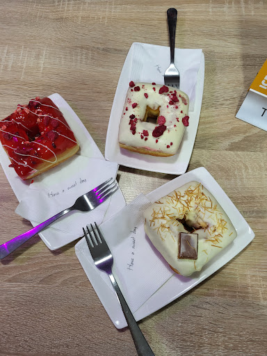 Read moreA fánkok finomak voltak amiket ettem, viszont a 70 éves édesanyám rendelt egy kólát, ami nem elég, hogy nem volt hűtve (!), a felszolgáló rugalmatlansága kiábrándító volt. Nem tudta édesanyám, hogy nem Pepsit vagy CocaColát fog kapni, hanem egy számára ismeretlen Fritz Kola-t, ami nem kapható cukormentes verzióban, cserébe fekete a címke az italon. Mire észrevettem és szóvá tettem, a felszolgáló már felbontotta az üveget. Szóltam, hogy így nem kérnénk, erre flegmán odaszólt, hogy ő ezt már felbontotta. Egy magára adó szolgáltató számol járulékos veszteséggel, a készletre tett haszon nem ezen múlik. Végül kifizetették édesanyámmal a kólát, ami nem ízlett neki és nem tudta meginni a cukortartalma miatt. Ez a csalódás elrontotta az egész élményt, többet...