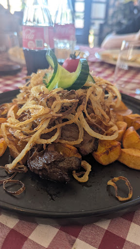 Read moreHely hangulatos, de azért 1* mert a pincér a viselkedése felülírta a hely hangulatát 😥 Megérkezésünkkor a főbejáratnál foglaltunk helyet, az asztal igényessen előkészítve fogadott 2db étlappal. Kb. 5perce ültünk az asztalnál mire a pincér megjelent 2db étlappal nem túl szívélyes fogadtatással. Mondtuk, hogy volt itt az asztalon és már megnéztük. Mire megszólaltam volna, hogy mit szeretnénk hátat fordított, mondván hamarossan jönnek. Újabb hosszú perces várakozás mire vissza tévedt asztalunkhoz és végre leadhattuk rendelésünket. Az étel és itallal nem volt gond 5* és dicséret a szakácsnak 😊 Étkezés után elmentem mosdóba ami tiszta, igényes és jó illatű vol, dicséret a takarító személyzetnek 😊 Közben a maradék pizzát sikerült becsomagolni csodával határos módon. Az étkezés befejezése után bő 30petcet vártunk a számlára, 2x is jeleztem fizetnénk. Már azon a ponton voltam, hogy kisétálunk és talán utánnunk jönnek, hogy hé! Fizetni ki fog! A számla végösszege 5980ft volt, nem vagyok.... de a pincér elfelejtette vissza adni, azaz nem is akarta vissza adni a 20ft-ot mert úgy gondolta neki az megjár. Tiszta szívemből sajnálom a vezetőséget, hogy egy nagyszerű helyért amiért gondolom nem kevés áldozatot hoztak egy unott pincér tesz tönkre és éri el vele a negatív értékelést. Üdvözlettel:...