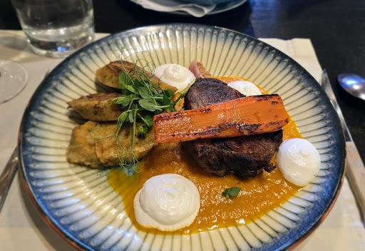 The food was really good the cream of strawberry soup was really refreshing, crispy goose leg with red cabbage and rustic roast potato worked really well and the flavours were well balanced. Mangalitsa Pork steak that was thick and grilled to perfection with potato dumplings and sour cream.