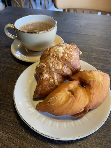 Auf unserem Weg wollten wir Kaffee trinken und was kleines essen. Wir haben hier angehalten, weil es nett aussah. Man zieht eine Nummer und wenn die Nummer aufgerufen wird, wird man bedient. In der Bäckerei gibt es neben Backwaren auch Getränke, heiß wie kalt. Auch Milcherzeugnisse sind erhältlich. Die Mitarbeiter waren sehr nett und wir wurden schnell bedient. Die belegten Brötchen waren Fisch und sehr lecker auch der Kaffee war gut. Man kann entweder mitnehmen oder dort essen, es gibt ein paar Tische und Stühle, sehr nette eingerichtet. Die Toiletten waren sauber. Können nur diese Bäckerei empfehlen, wirklich alles vorhanden. Die Preise waren...