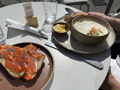 Read moreGreat food. Coffee is high in acidity which some people love, some loath. Portions sadly are expensive but tiny - in fact, the breakfast platter (around ISK 3,900 depending on the topping of the toast) includes just half (!) a pain au chocolat!! Service unfortunately is also high in acidity - I wasn't able to catch a smile and felt treated in a slightly passive-aggressive fashion which felt particularly inappropriate given several forgotten items about my order. I totally understand that a busy cafe can be stressful for the staff but smiling would make both guests (who all were patiently waiting anyhow) and the staff themselves feel more relaxed...