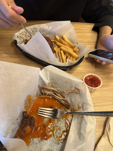 now the food, my biggest issue with deep fried chicken is that most fast food places now serve dry chicken and it's not enjoyable. I bite into this one, JUICES COME POURING. once the owner comes by to ask how it was I answered simply, sorry this is criminal... HOW did you make this chicken soooo juicy! he laughed and gave me a secret tip that I am keeping to myself. should you want it, then go try...