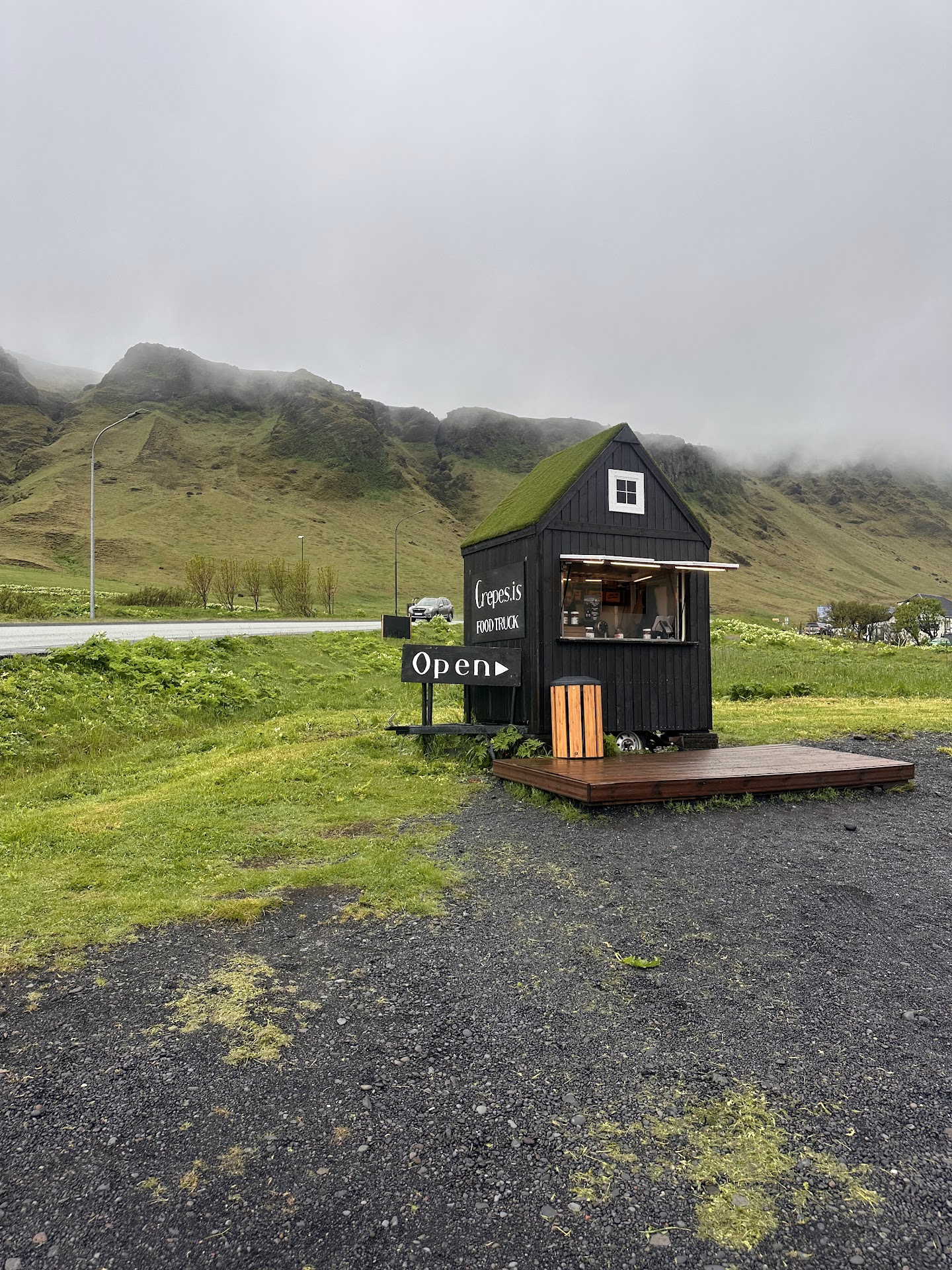 Mikel was great and makes them right in front of you. He spreads the batter, adds your choice of fillings, folds it into a handy triangular paper sleeve, and you get to indulge right there on the picnic table over charming Vik contemplating your walk along Vik's hidden little black sand beach.