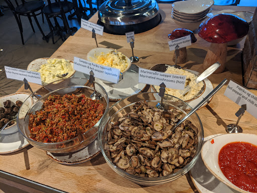 This place was delicious. There’s friendly staff who welcome you in, and seat you and they come by in a jiffy! My whole party got the buffet and it was delicious! (around $25 USD per person) For the buffet, they had a variety of mushroom-based sauces, and butters to top your bread, though I didn’t realize the bread was for the soup and I made a sandwich… But the sandwich was still superb nonetheless! I had mushroom butter, butter-thyme marinated mushrooms, a mushroom and bell pepper tapenade and a bell pepper and chili marmalade put inside of the sandwich. Delicious! And for the mushroom soup was so good! I myself am not a huge fan of mushrooms but this made me almost like them! It was so tasty! This restaurant is so good! I 100% recommend! Though I would be wary if you have any mushroom related allergies because this place pretty much serves...