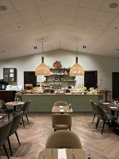 For a high end luxury hotel the restaurant and food was surprisingly poor. Bar was nice with fireplace. Dining room felt cafeteria-like. Dinner menu was typical for most of Iceland. Mushroom soup was reasonably tasty. Calamari appt was chewy and mostly corn breading. Had arctic char which would have been a 3 if they hadn't covered it with a huge dollop of mayo on one side and then tomato sauce on the other. Same tomato sauce that my husband's gnocchi was swimming in. Gnocchi was not good at all. Tasted like it came from a can...think chef boyardee. Breakfast was OK. No local Icelandic foods other than Skyr. Compared to similar hotels we ate at during our holiday Grimsborgir was far far...