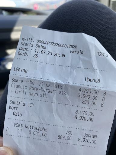 Read moreIt's hard to say if Grillhúsið is a rare gem worth a thousand stars or minus a million. It's a throwback to romantic gray concrete, dimly lit dark wood furniture and orange plastic. It's a time capsule. The TV shows music videos from the eighties. The food is uncomplicated and geared towards the exclusive and shrinking populace of viking truckers. They probably have their secret yearly get-together here when the nights are dark and the days are grey. There's concrete seating in the cold outside wind to remind you that aren't one and you that just aren't hard enough to handle it.