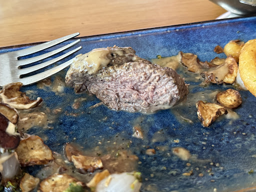 We had a burger and spare ribs: the burger was cold and the ordered fried egg was forgotten and only delivered on request. In general, the burger was below average and loveless for a "grill house". The spare ribs were average. The fries, however, were cold. A cleaning cloth for the hands for after the meal was then also delivered on request. The side salad was unseasoned.