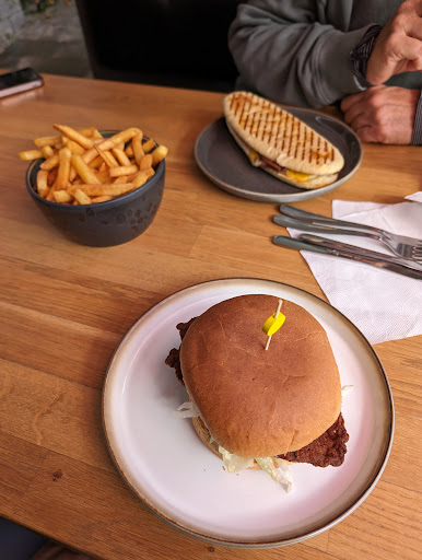 Such a cute little spot in a converted greenhouse. We ordered a hot chocolate, ham and cheese panini, chicken burger, and side of fries. The food was very solid, nothing fancy but well made. The fries were elite! The hot chocolate was PERFECT. The service is what made the experience exceptional in my opinion. As two Americans we fumble around a little bit in countries but the man working the register was incredibly helpful and sweet. He helped us navigate with a smile on his face as cafes in the US don't typically have this food and...