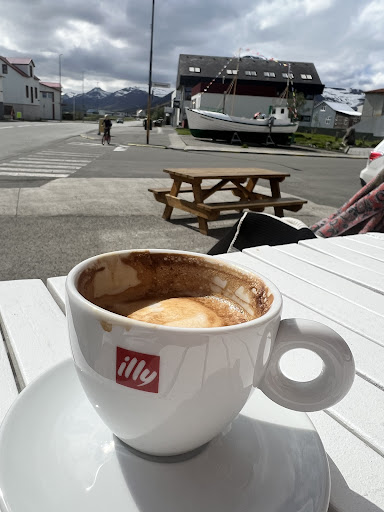 A nice place to stop. The woman is super friendly. At the beginning we were alone, but in less than half an hour it was full, with some locals also. The cakes were looking and also tasting superlative! Side note: given that she does everything alone (or almost everything - later on her husband? went arrived to help) one has to be patient and keep himself busy while she prepares the order. Being stressed due to this bit brings nothing: we are in Ólafsfjörður, she cannot have a lot of people that works with her. In times were everything it's super fast it a good lesson about the fact that slowing down and being patient has...