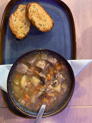 Due to young untrained or uninterested staff we had a very bad dinner experience: when ordering our main dishes I asked if I could have a small portion of the lamb soup from their menu as a starter… the waitress explained it is a small portion anyway. So I ordered it and fish’n chips as main. My husband ordered the pizza special. After short time my soup came, quite a big bowl (which was very tasty) with two slices of hard bread. I hardly ate half the portion when a different waitress brought my main dish… after I had finished half of this (fish should not be eaten cold, fish was having questionable shape to be fresh but probably frozen?) we asked for my husband’s pizza (in the restaurant were only two other tables with guests, all had finished their food long ago)… the waitress was astonished and stated something about the starter (which here colleague knew was not for him), and then something about problems with the dough - and after 15 more minutes (and a second request) they brought an obviously freezer dough base with random cheese and salami slices (which is a shame to be served in any restaurant, let alone after 30 minutes waiting)! As my husband was very hungry he tried to eat the pizza, but it was so bad that he stopped and nicked some of my fries instead… the staff was obviously incompetent and not interested in the customer. Never to...