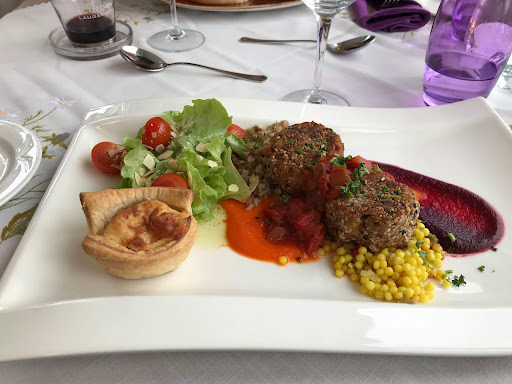 There’s a vegetarian option that is to die for!! It’s made of a mixed beans patty, succulent sauces and a pastry with sweet potatoes. On one side there’s the yellow pasta with fresh vegetables and the other there’s orzo with fresh spices. The salad was so simple and yet succulent!