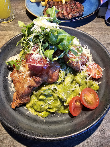 The vegan steak was incredible, it had great flavor and texture. The fish and chips were moist and crispy in all the right ways.