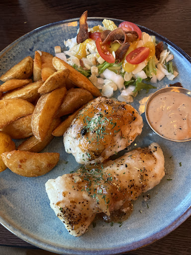 Once seated, we were attended to by a friendly man who was very helpful and quickly brought us our meals, which were delicious. Sadly, the positive experience with him contrasted heavily with the attitude of the young woman working there. She had an earpod in and seemed disinterested in her job. Her unfriendly demeanor and passive attitude made us feel unwelcome. When we approached the bar to pay, she didn’t even acknowledge us, nor did she ask if we enjoyed our dinner. She just silently nodded towards the cash machine before walking away without saying a word.
